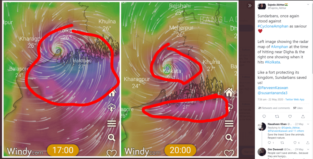 What is often not talked about is that it is the lifeline for West Bengal and Bangladesh. Bay of Bengal is one of the roughest seas. Every year there’s a cyclone which affects the coastal area of India and Bangladesh. The Sunderbans has been reducing the impact of cyclones on West Bengal and Bangladesh. In addition to that this rich mangrove forest acts as lungs for this region.